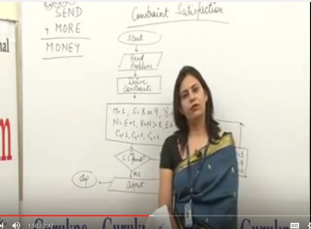 This is part of lecture presented by Dr. Madhu Sharma, Head of the Department (MCA) in Biyani Institute of Science and Management. This lecture is about – Constraint Satisfaction Algorithm, in Artificial Intelligence. Constraint Satisfaction is a heuristic search technique to solve problems that are to be solved after satisfying few given constraints and if required then making guess for adding new constraints.