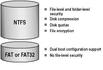 FAT (FAT16 and FAT32) and NTFS are two methods for storing data on a hard drive. The hard drive has to either be formatted using one or the other, or can be converted from one to the other (usually FAT to NTFS) using a system tool. FAT32 and NTFS are file systems i.e., a set of logical constructs that an operating system can use to track manage files on a disk volume. Storage hardware cannot be used without a file system, but not all file systems are universally supported by all operating systems.