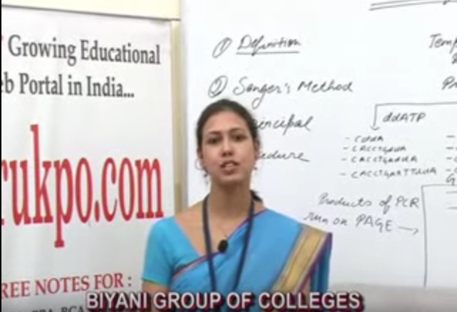 The lecture includes DNA sequencing procedure by Sanger. The process involves the termination of DNA replication by the use of dideoxy nucleotides made of four different bases of DNA. It involves the DNA polymerisation by the PCR but the reaction mixture consist of primer, dNTPs, DNA template, buffer, DNA polymerase and ddNTPs consisting of pentose sugar lacking –OH group at 3′ position. The chain extension takes place till the DNA polymerase do not encounter ddNTPs. After PCR the products are analysed on AGE and finally sequenced from bottom to up.