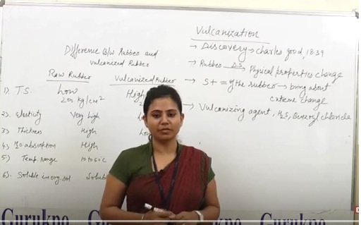 In this video, Ms. Aastha Pareek, Assist. Prof. in Biyani College of Science & Management Kalwar, explains chemically what will happened when sulphur is treated with rubber. Its various physical properties changed like Tensile strength, Elasticity, Chemical resistance etc.